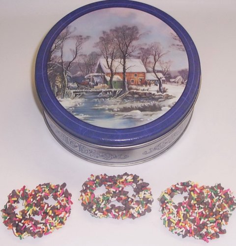 Scott's Cakes Dark Chocolate Covered Pretzel with Chocolate Chips & Jimmies in a Mini Homestead Tin Review