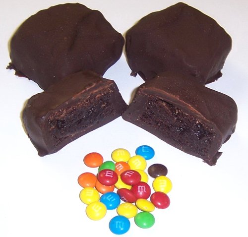 Scott's Cakes Dark Chocolate Covered Brownie Bites with M and M's in a Decorative Bag Review